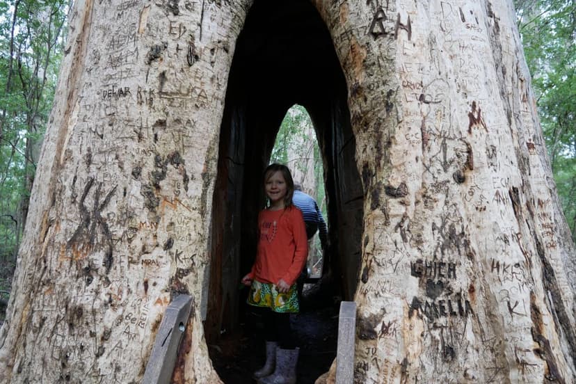 The Beedelup Falls Walk Trail extends into a scenic 3-kilometre loop around Lake Beedelup, passing through the tranquil grounds of RAC Karri Valley Resort. A perfect spot to pause, this picturesque lake is surrounded by towering karris and vibrant native flora, making it ideal for a picnic or a nature walk. If you’re feeling adventurous, a 1.5-kilometre detour along this trail leads to the famous Walk-Through Karri, a 400-year-old karri tree with a unique man-made tunnel at its base. Standing inside this tree with 151 tonnes of living history above you is an experience unlike any other and a photo opportunity not to be missed.